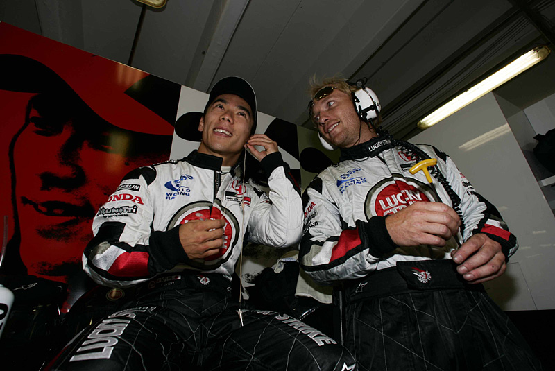 グリッドに着く前にガレージでメカニックと談笑