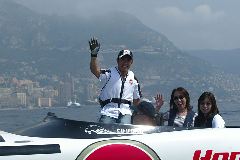 ボートに乗るのは、イギリス・ラムズゲートのボートレースに出て以来。F1や飛行機だけでなく、たまにはボートに乗るのもいいですね