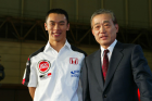 会場に展示されたB・A・Rホンダと一緒に。国内外から多くのプレスが詰めかけていた