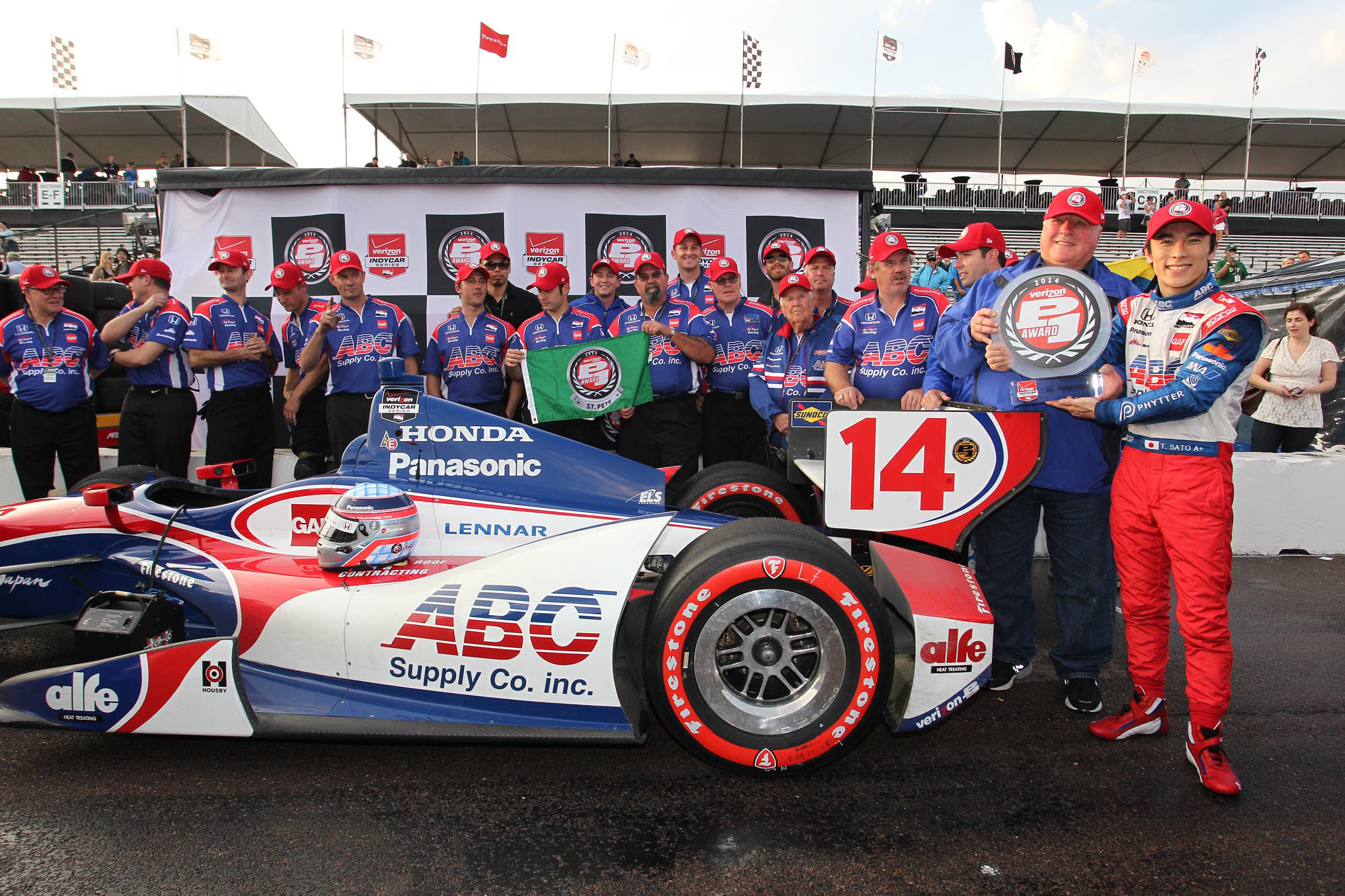 予選は雨のため3時間以上もディレイとなったが、Q1が始まった後は次第に路面が乾いて難しい予選だった。しかしカーナンバー14は見事にポールポジションを獲得する!