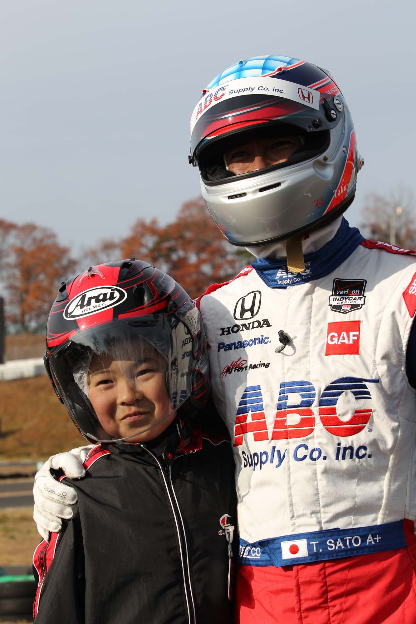 タイムトライアルでは琢磨自らチェッカーフラッグを振ってゴールで迎え子供達の健闘をたたえる