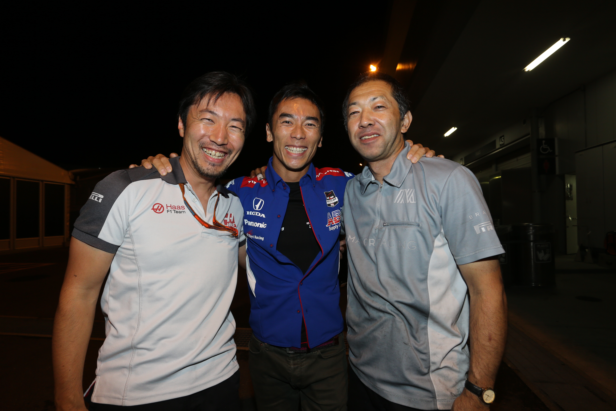 パドックに行った一番の目的は、ハースの小松エンジニアとマナーの飯田メカニックと会いたかったから。イギリスF3時代以来およそ15年ぶりの3ショットだった