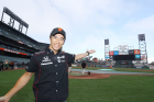 サンフランシスコ・ジャイアンツに招待をいただきスタジアムの中へ。広いフィールドにグリーンが眩しい