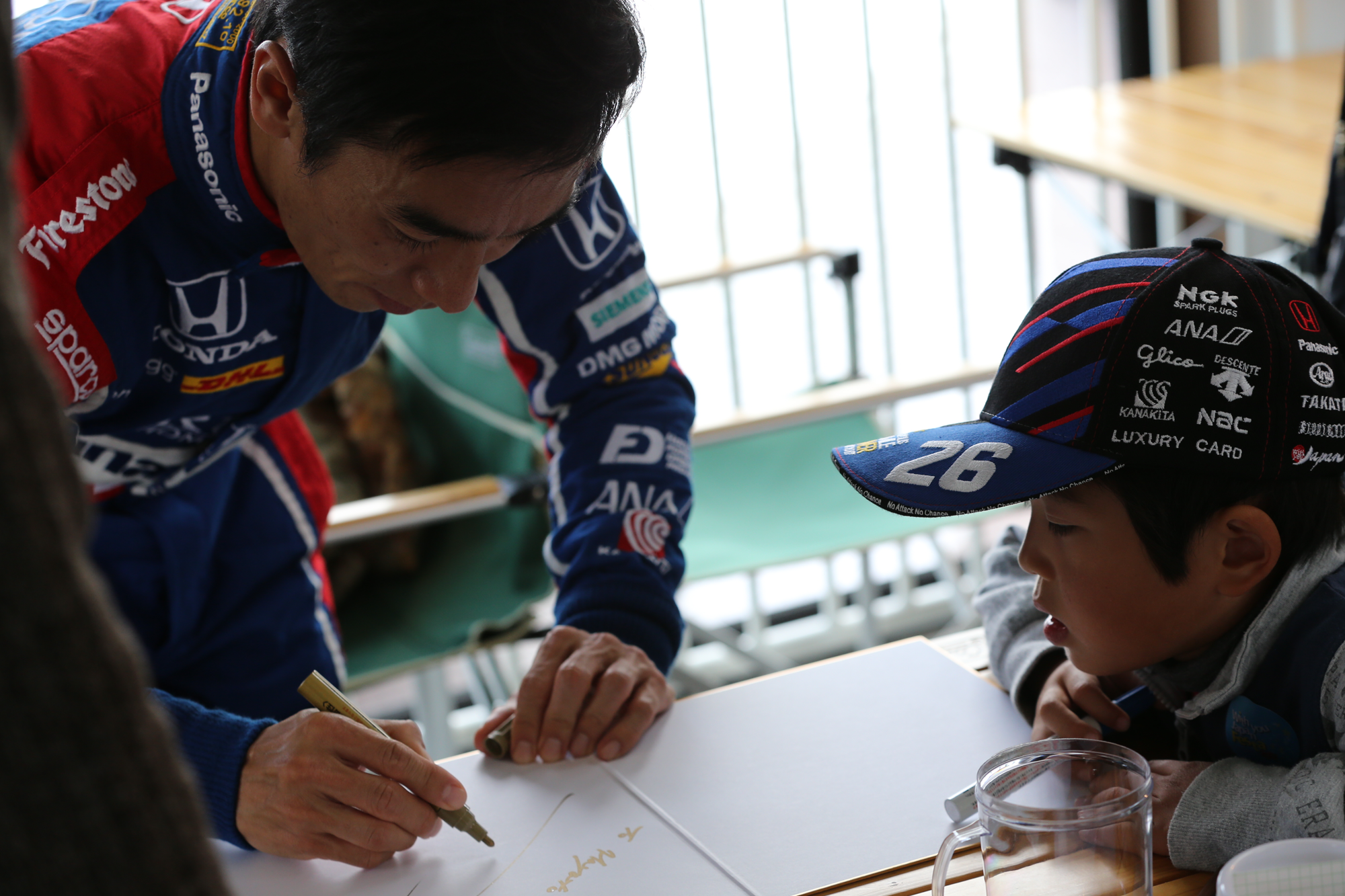 イベントの合間には子供達と写真撮ったりサインをしたり