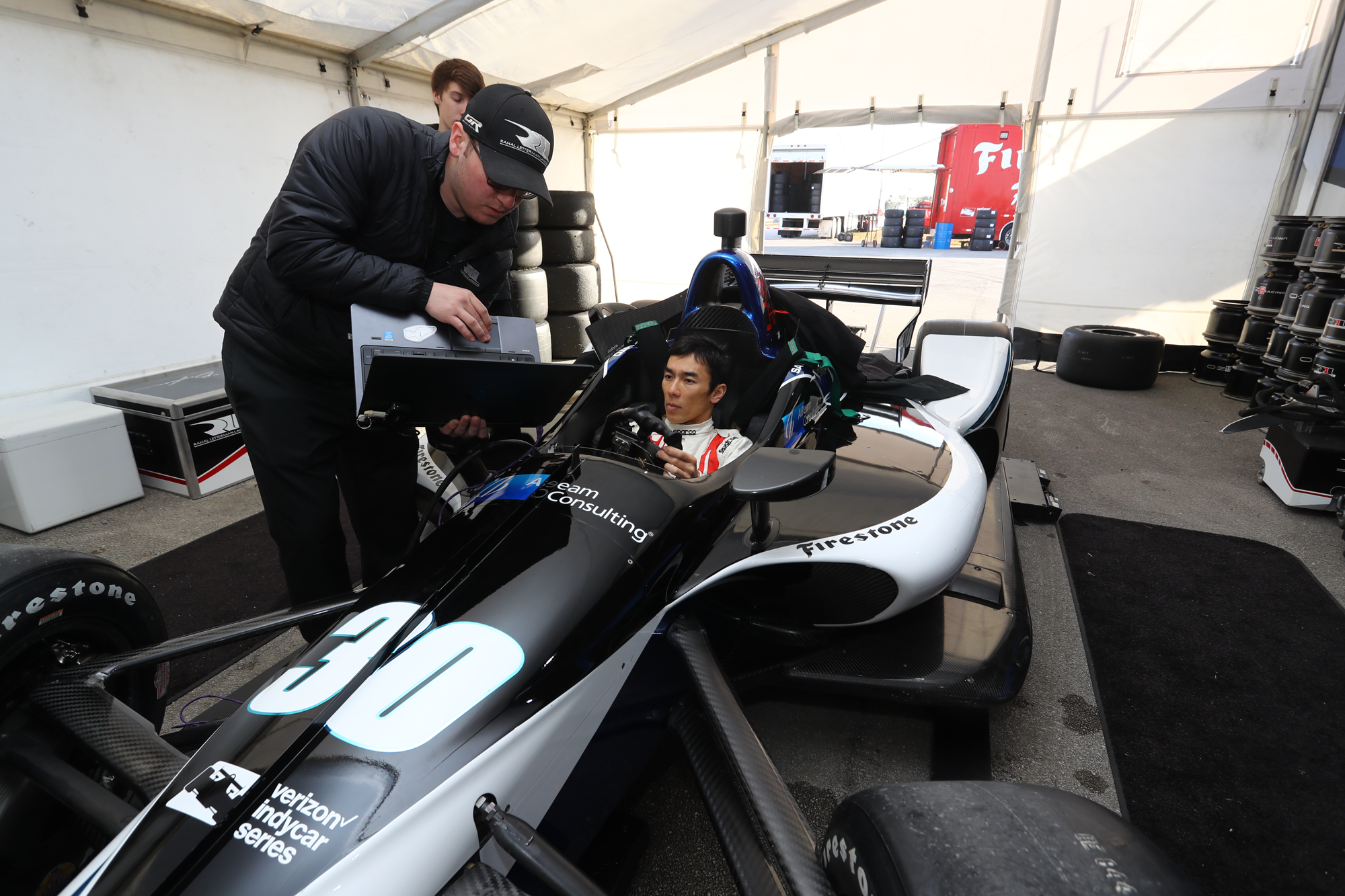 エンジンも始動してコースイン。隣のピットは奇しくもアンドレッティ・オートスポーツ。今年は互いにライバルとなる