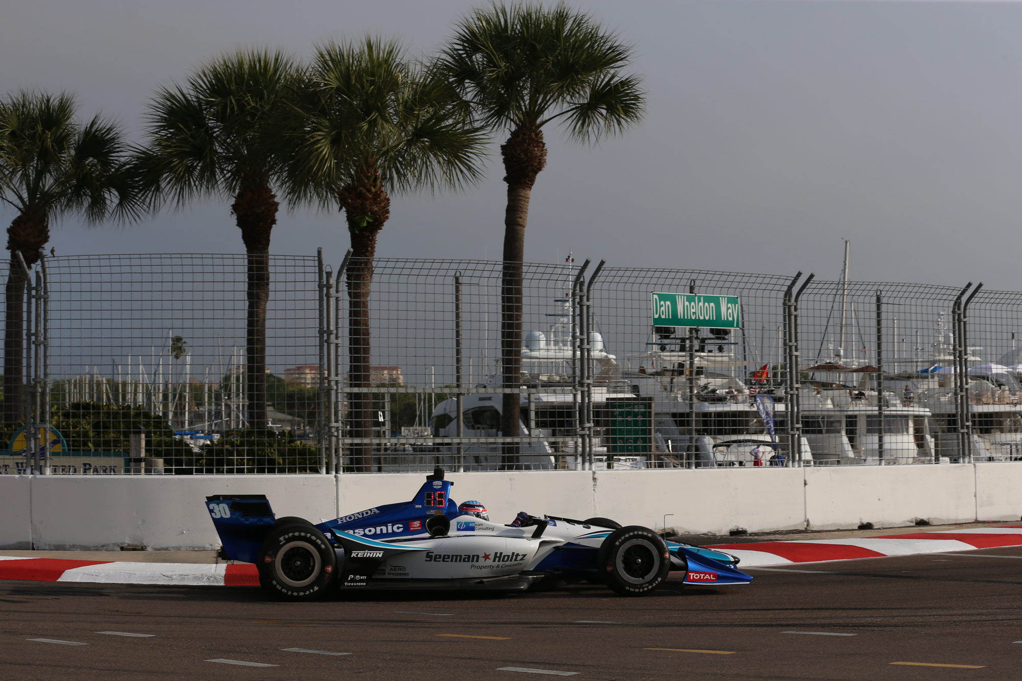 土曜日のFP3。ターン7〜8の木陰を抜けてハーバー沿いのストレートに。3番手で終えた