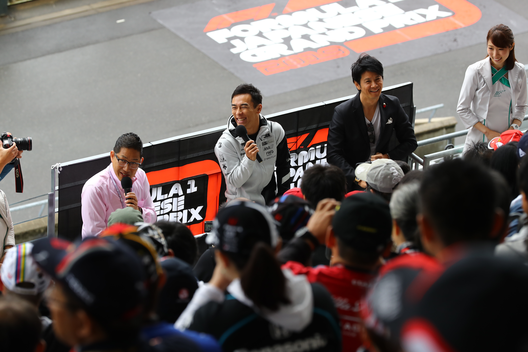 F1のレースはコメンタリーブースで解説をした後、GPスクエアのステージに戻り川上憲伸さん、吉田沙保里さんとご挨拶