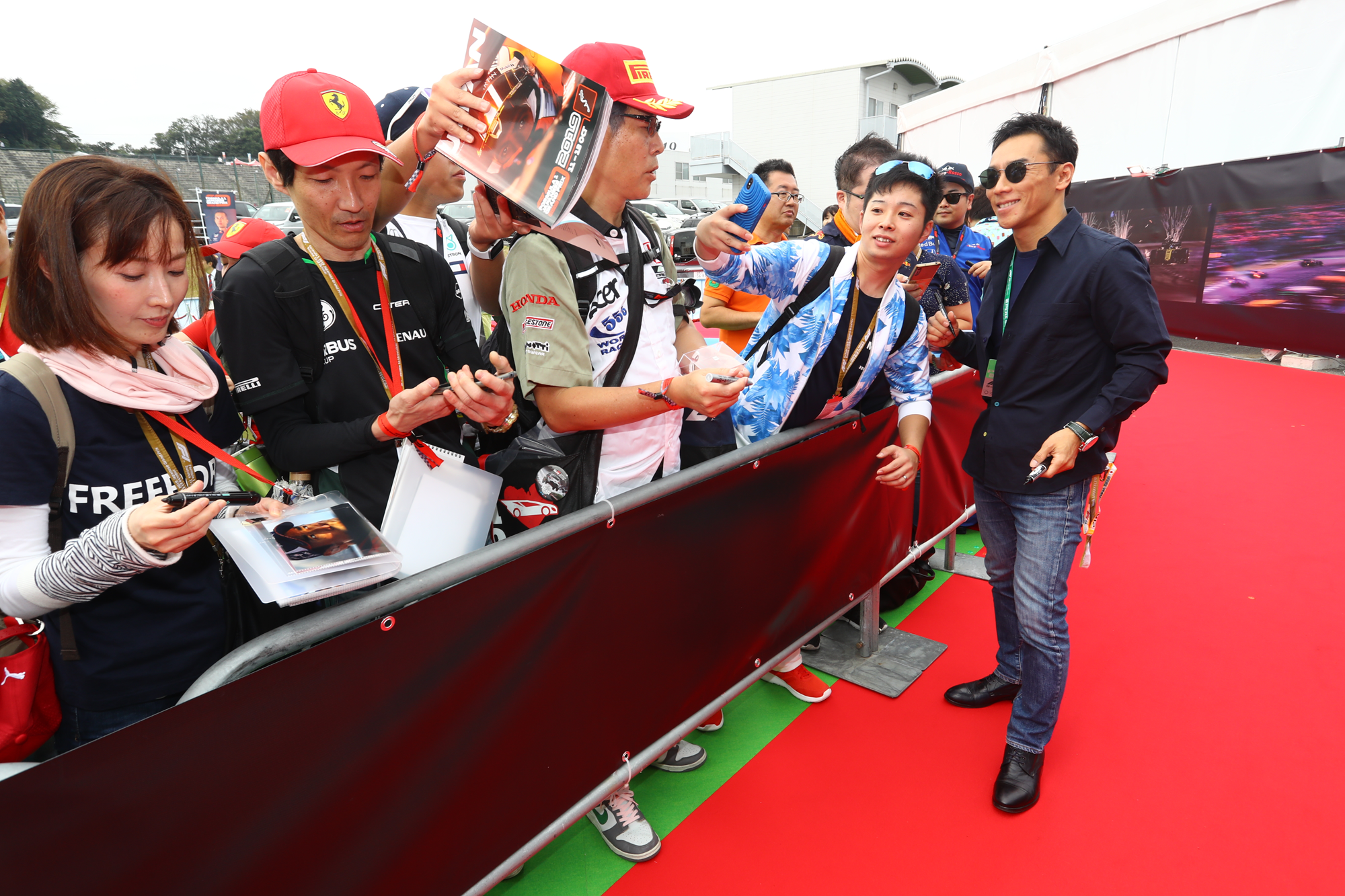 今年も日本GPに招かれゲートに着くとファンの皆さんの写真とサインに応じる
