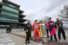 IMSで行われるオープンテストの前に現役のインディ500チャンピオン9名がが揃ってボルグワーナートロフィーと揃って記念撮影