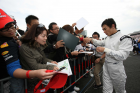 イベント移動の合間にはコースサイドで待っていてくれたファンにサインを