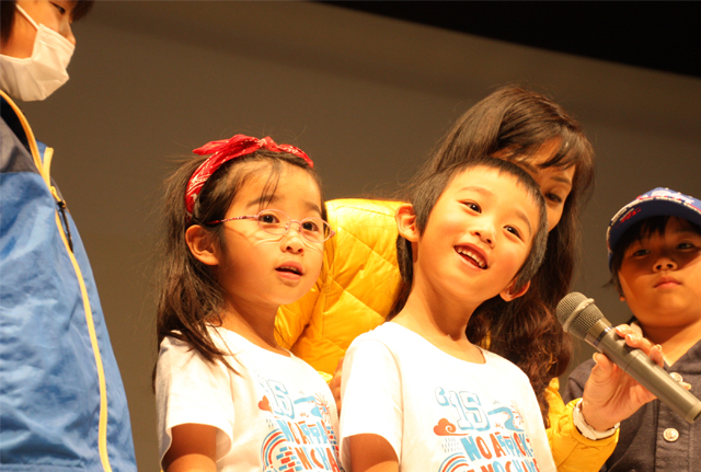 さらにステージ上では琢磨君と参加者全員がワンフレームに収まる記念撮影を実施。続いて、TCMチケット販売のときに予告された「先着50名限定のツーショット写真撮影」があまりに好評で、当初アクセス困難な状況に陥った経緯などを説明。そこで追加で30名にツーショット写真撮影のチャンスをプレゼントすることになり、当選者の方々には当選チケットが座席に貼り付けてあるので確認して欲しいとかおりさんが発表すると、これまた会場は喜びと悲しみの声で騒然となりました。なかには、当選したうれしさで涙を流している方もいたほど。本当に琢磨君ってファンの皆さんから愛されているんですね。