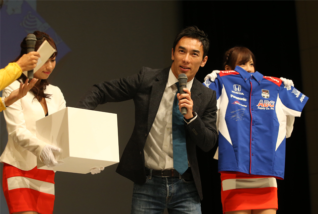 さらにはこちらも恒例のジャンケンコーナー。ここでの賞品がさらにすごい! なんと2016年版レーシンググローブ、2016年版レーシングシューズ、そしてトドメは2016年版ドライバーズ・アンダーウェア(着用済み)というラインナップなんですよ。ジャンケンコーナーは琢磨君の「運任せではなく、自分の力で勝ち取る」というアイデアから始まったもの。それだけに賞品は抽選会よりも豪華になるというわけなんです。