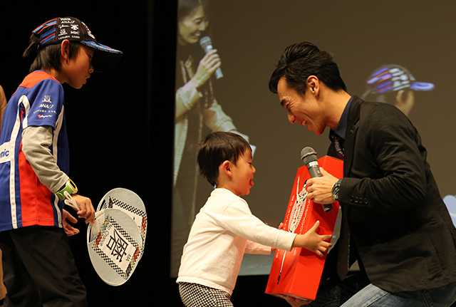 続いて指名された小さな女の子は「私はお絵かきが好きですが、琢磨さんは小さい頃、なにが好きでしたか?」と質問。これに琢磨選手は「僕も絵を描くのが好きでしたが、クルマの絵しか描けませんでした」と回答。会場はほのぼのとした雰囲気に包まれました。
